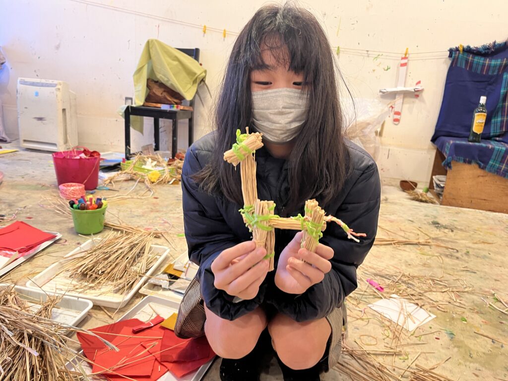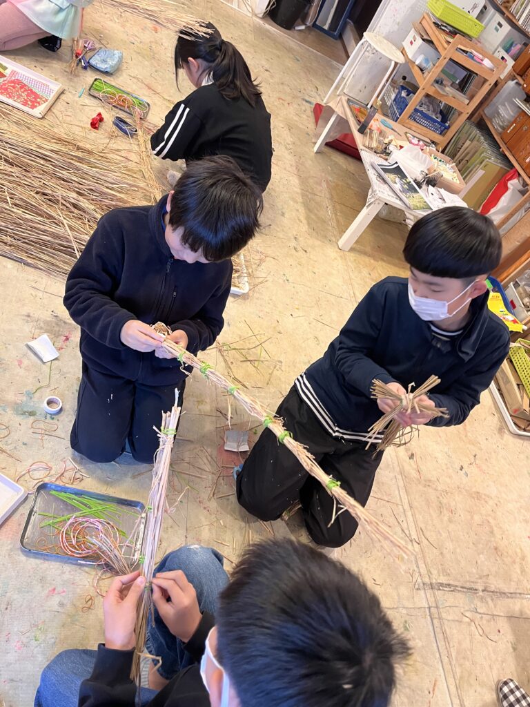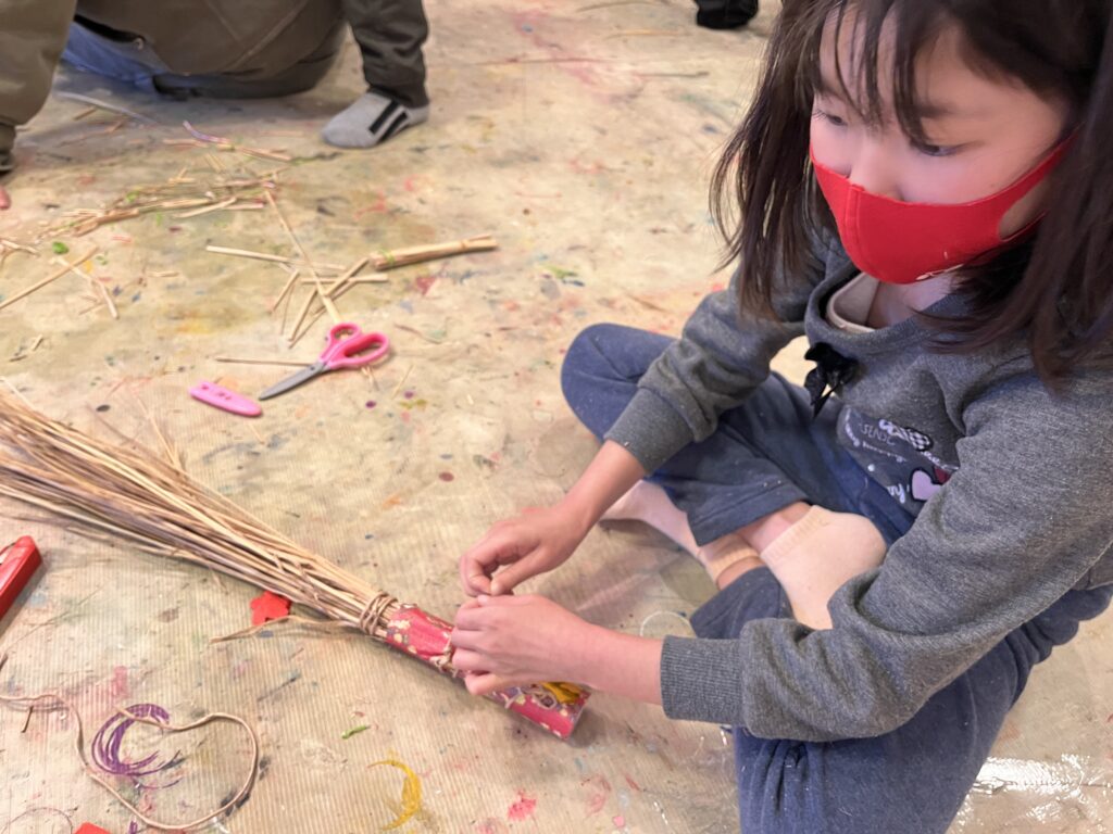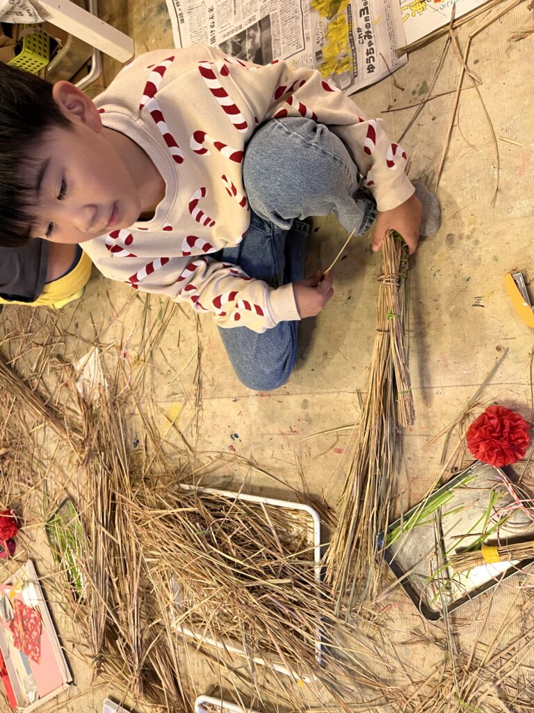 初めてわらを使ったオブジェ作りに挑戦しました!