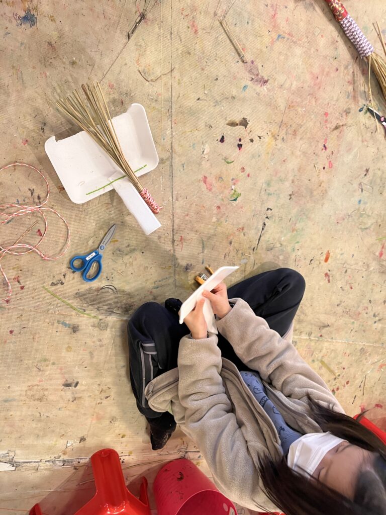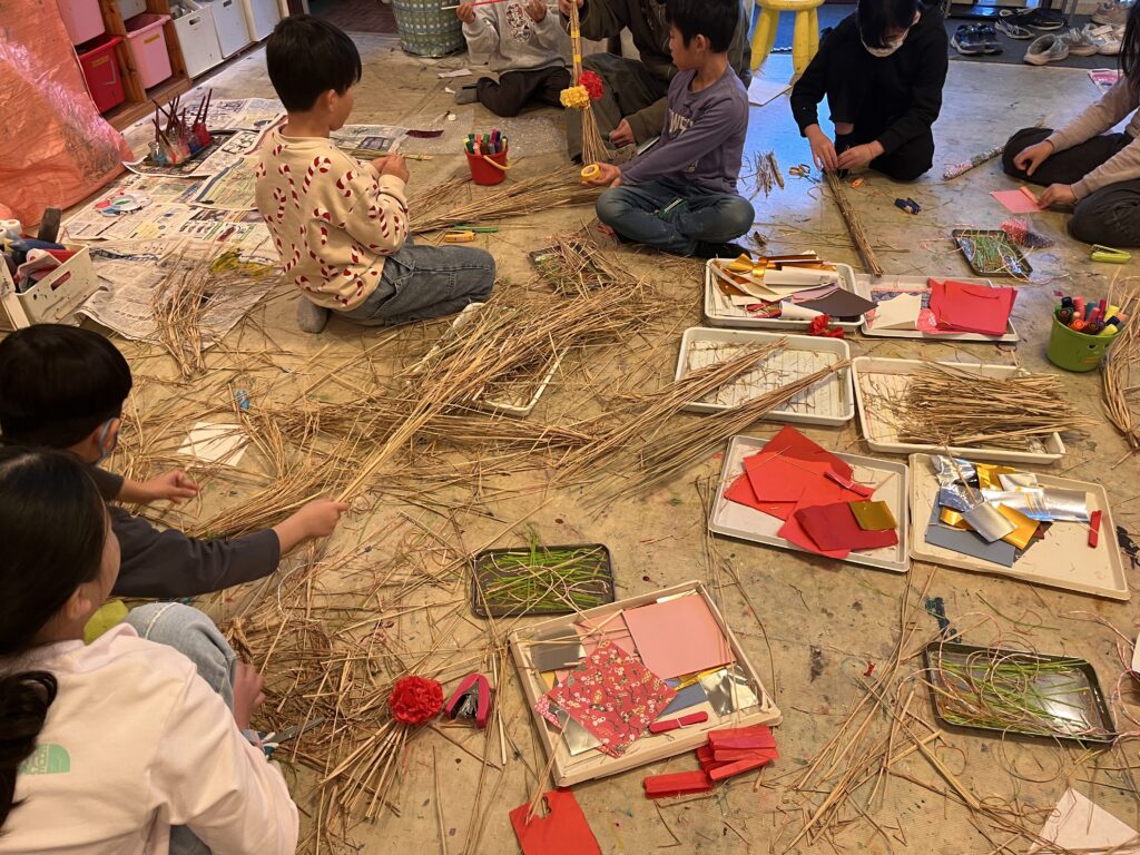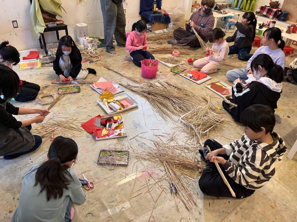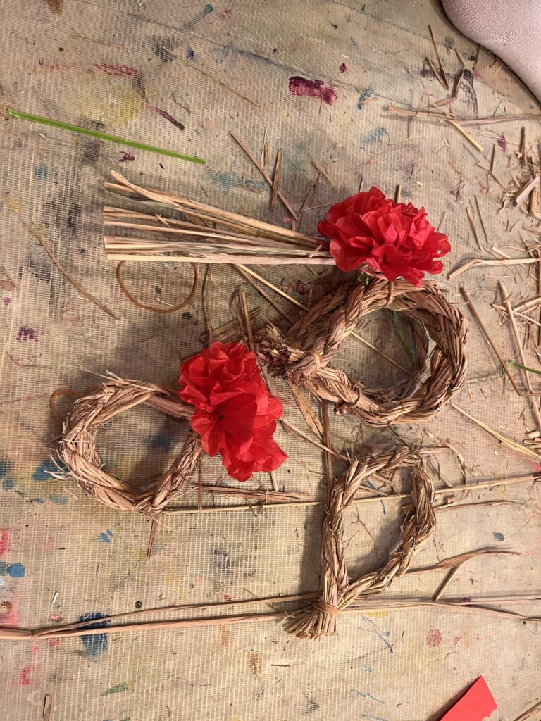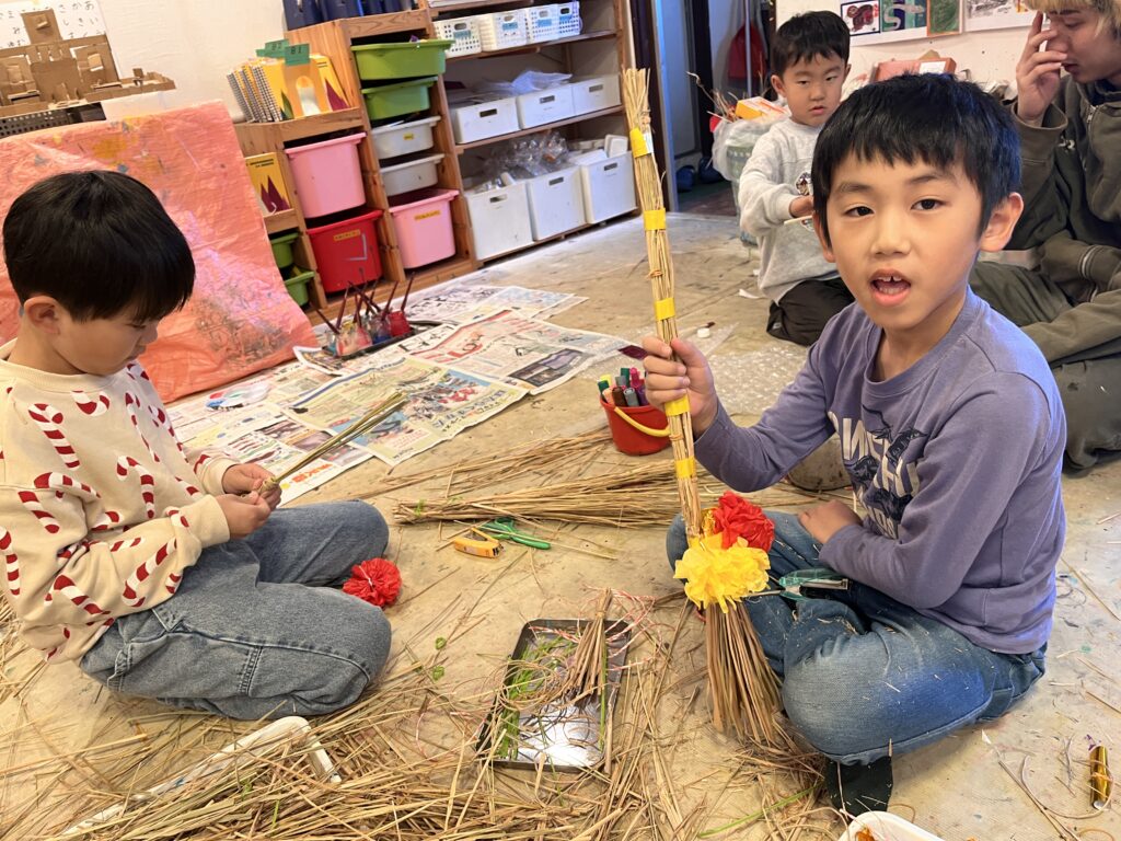 初めてわらを使ったオブジェ作りに挑戦しました!