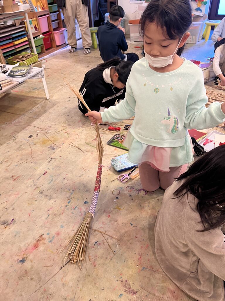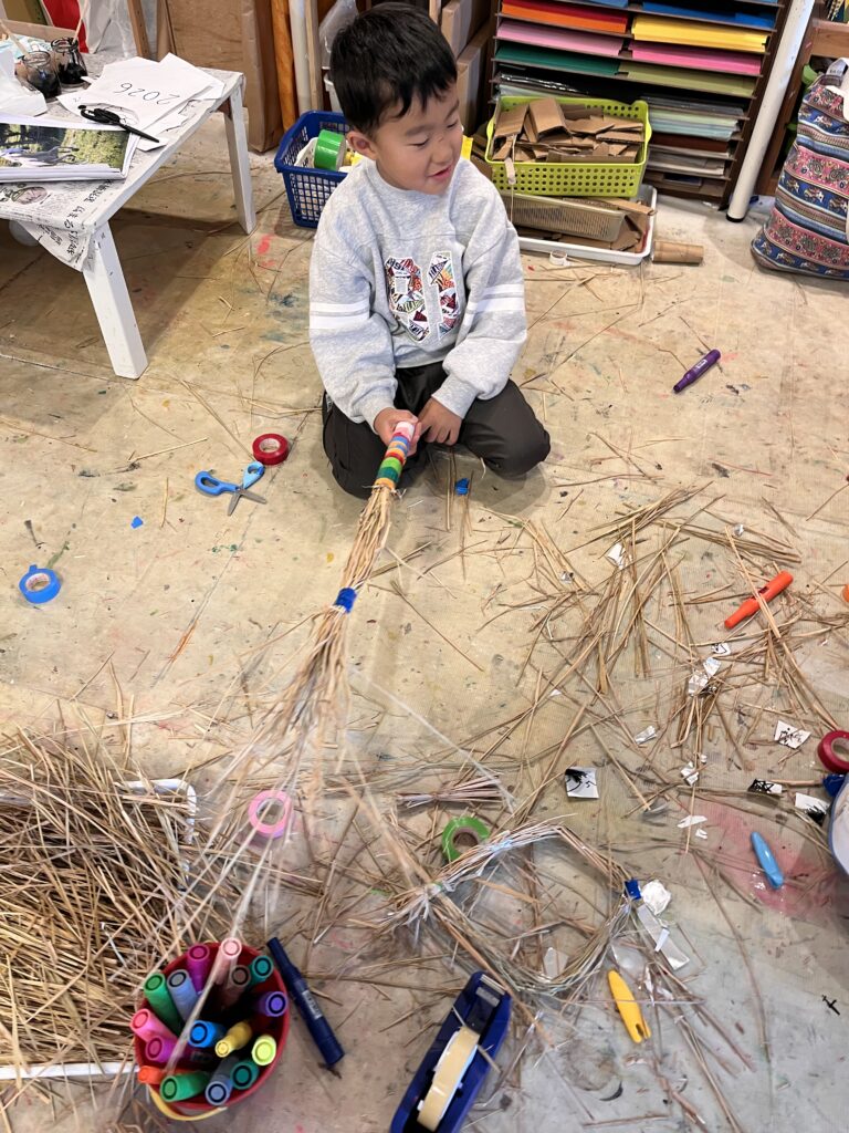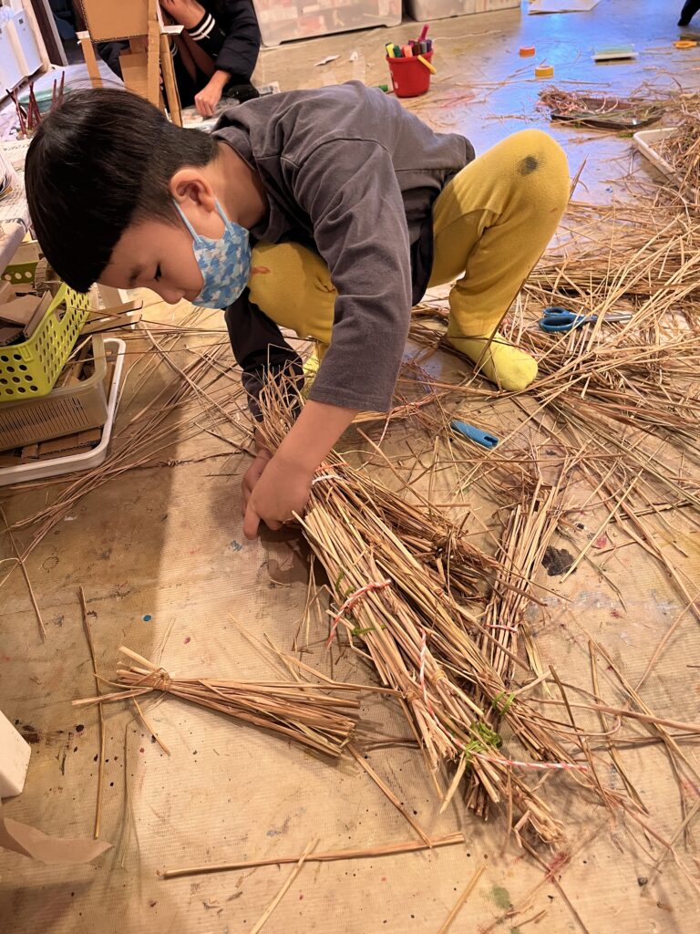 みてさわって、わらの特性を知るうちに、色んな面白い発想が生まれ、紙の工作とは一味違った制作になりました✨
